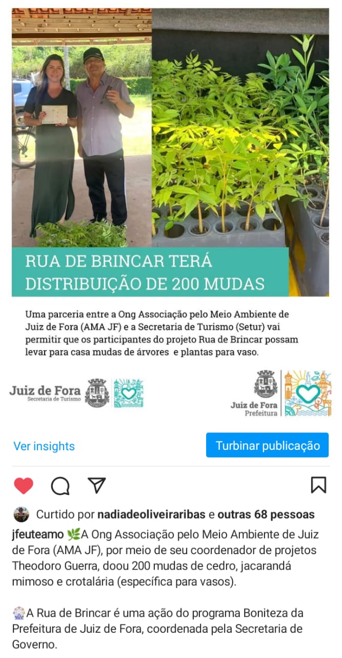 Veja MaisA Ong Associação pelo Meio Ambiente de Juiz de Fora (AMA JF), por meio de seu coordenador de projetos Theodoro Guerra, doou 200 mudas de cedro, jacarandá mimoso e crotalária (específica para vasos).